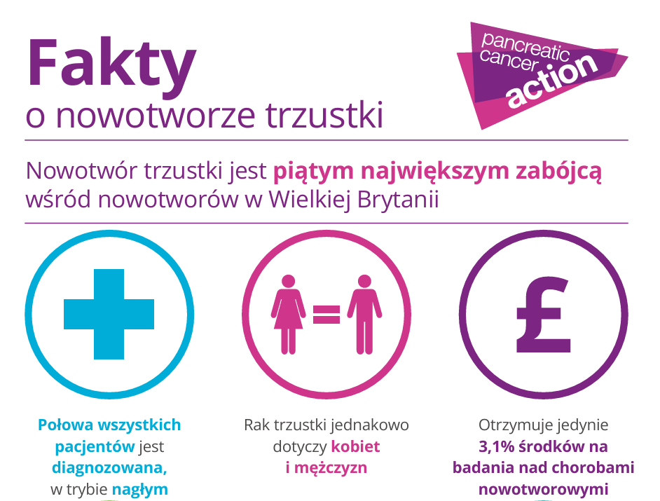 Poświęć chwilę na to aby je poznać. Rak trzustki ma najniższy 5-letni wskaźnik przeżycia ze wszystkich 22 najczęściej występujących nowotworów w Wielkiej Brytanii, głównie z powodu późnej diagnozy. Wskaźnik 5-letniego przeżycia w przypadku raka trzustki wynosi obecnie 7,9%. Zobacz nasze informacje w języku polskim.